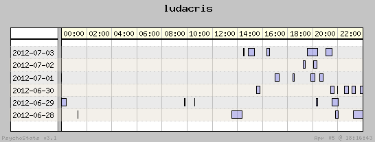 | 2012-06-28 | 8 | 5 | 1.60 | 0 | 0.00% | 20.00% | 02:26:31 | 319.55 |