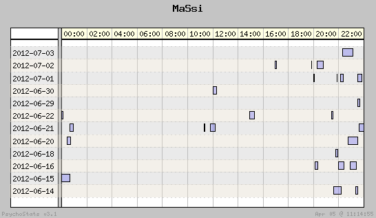 | 2012-06-04 | 5 | 5 | 1.00 | 3 | 60.00% | 5.97% | 00:13:50 | 501.62 |