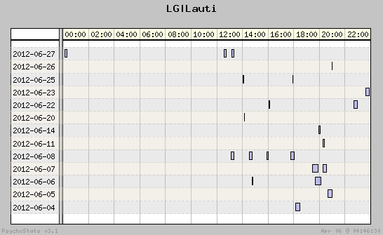 | 2012-06-06 | 12 | 10 | 1.20 | 4 | 33.33% | 17.88% | 00:30:12 | 315.61 |