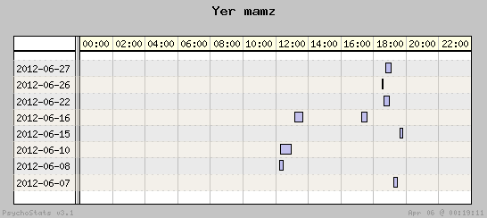 | 2012-06-10 | 27 | 13 | 2.08 | 11 | 40.74% | 15.75% | 00:38:05 | 547.55 |