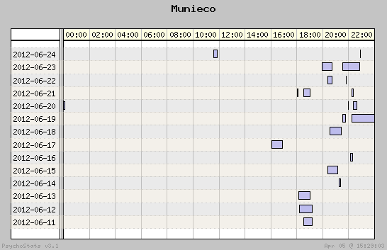 | 2012-06-18 | 26 | 18 | 1.44 | 9 | 34.62% | 9.87% | 00:51:54 | 338.39 |
