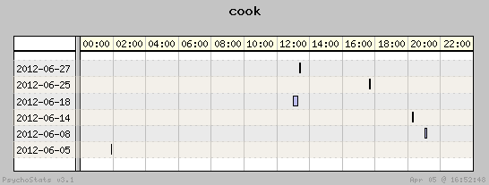 | 2012-06-25 | 0 | 1 | 0.00 | 0 | 0.00% | 11.11% | 00:02:02 | 503.25 |