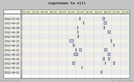 | 2012-06-26 | 6 | 26 | 0.23 | 0 | 0.00% | 9.45% | 00:41:32 | 94.30 |