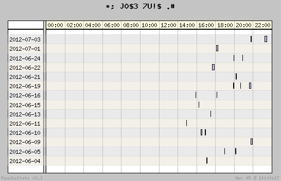 | 2012-07-03 | 0 | 3 | 0.00 | 0 | 0.00% | 9.52% | 00:16:54 | 114.16 |