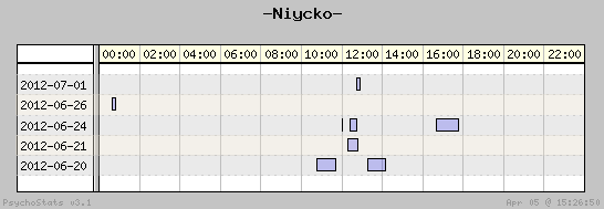 | 2012-06-21 | 9 | 10 | 0.90 | 3 | 33.33% | 16.58% | 00:25:32 | 369.75 |
