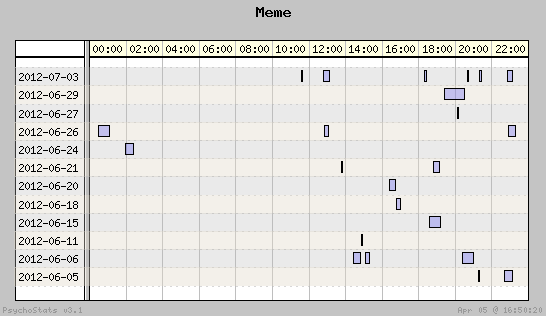 | 2012-06-11 | 0 | 6 | 0.00 | 0 | 0.00% | 6.67% | 00:04:24 | 320.19 |