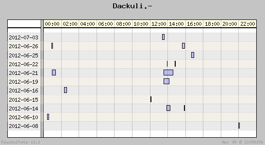 | 2012-07-03 | 8 | 8 | 1.00 | 0 | 0.00% | 21.30% | 00:13:08 | 307.54 |