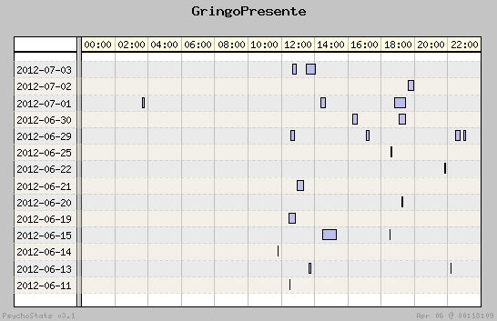 | 2012-07-02 | 10 | 12 | 0.83 | 4 | 40.00% | 24.35% | 00:17:26 | 254.92 |