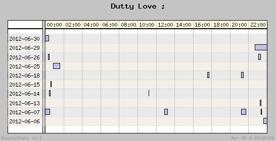 | 2012-06-30 | 15 | 5 | 3.00 | 6 | 40.00% | 13.13% | 00:20:18 | 385.47 |