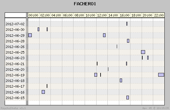 | 2012-06-11 | 0 | 4 | 0.00 | 0 | 0.00% | 3.03% | 01:11:57 | 171.98 |
