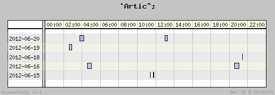 | 2012-06-16 | 23 | 19 | 1.21 | 11 | 47.83% | 20.04% | 00:57:11 | 364.32 |