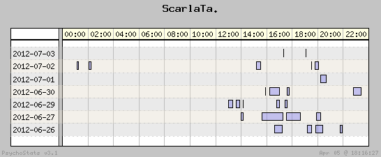 | 2012-06-29 | 19 | 14 | 1.36 | 8 | 42.11% | 17.30% | 00:57:27 | 558.34 |