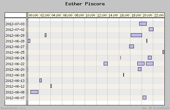 | 2012-06-25 | 3 | 8 | 0.38 | 0 | 0.00% | 17.16% | 00:14:56 | 275.53 |