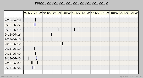 | 2012-06-27 | 14 | 4 | 3.50 | 5 | 35.71% | 19.80% | 00:13:19 | 257.55 |