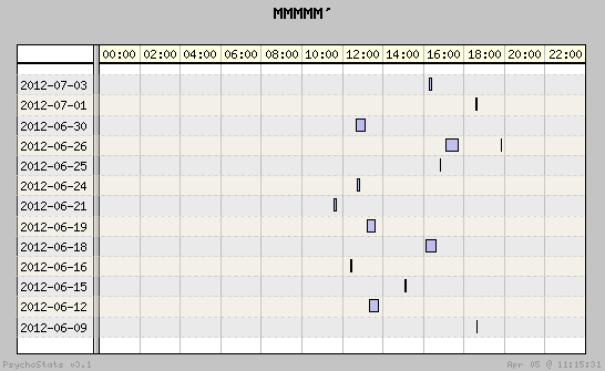| 2012-07-03 | 5 | 1 | 5.00 | 1 | 20.00% | 25.76% | 00:04:30 | 522.78 |