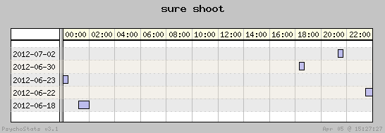 | 2012-07-02 | 11 | 10 | 1.10 | 4 | 36.36% | 16.53% | 00:23:40 | 269.00 |
