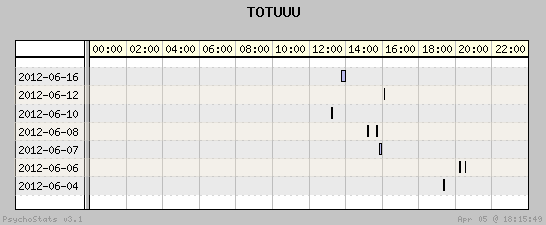 | 2012-06-08 | 2 | 4 | 0.50 | 0 | 0.00% | 16.67% | 00:05:19 | 266.31 |