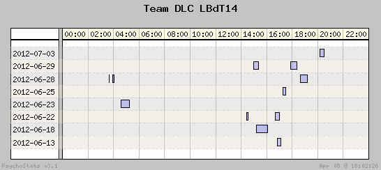 | 2012-06-28 | 12 | 14 | 0.86 | 4 | 33.33% | 16.67% | 00:36:31 | 168.50 |