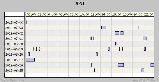| 2012-06-29 | 7 | 21 | 0.33 | 0 | 0.00% | 11.21% | 00:50:37 | 163.33 |