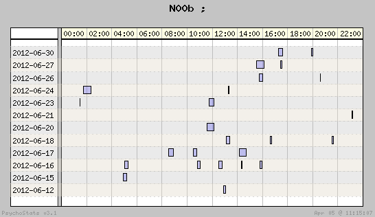 | 2012-06-04 | 17 | 13 | 1.31 | 6 | 35.29% | 24.33% | 01:00:18 | 401.83 |
