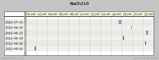 | 2012-07-03 | 1 | 14 | 0.07 | 0 | 0.00% | 5.98% | 00:20:23 | 127.22 |