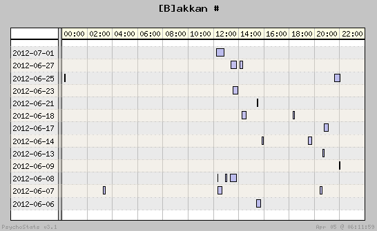 | 2012-06-23 | 26 | 8 | 3.25 | 14 | 53.85% | 22.93% | 00:22:24 | 452.74 |