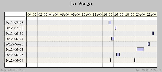 | 2012-06-05 | 14 | 22 | 0.64 | 7 | 50.00% | 14.03% | 00:32:37 | 176.15 |