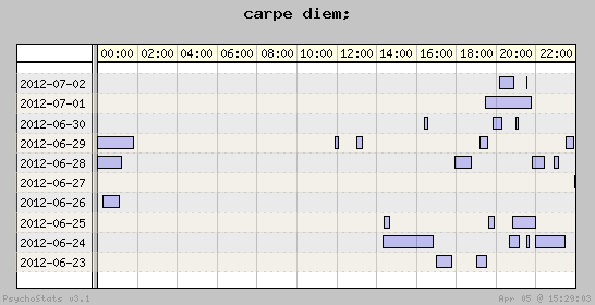 | 2012-07-02 | 31 | 22 | 1.41 | 7 | 22.58% | 17.12% | 00:44:37 | 530.01 |