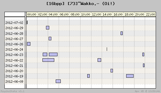 | 2012-06-26 | 4 | 29 | 0.14 | 0 | 0.00% | 18.84% | 00:31:08 | 168.82 |