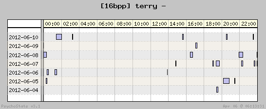 | 2012-06-09 | 0 | 7 | 0.00 | 0 | 0.00% | 1.64% | 00:07:03 | 183.69 |