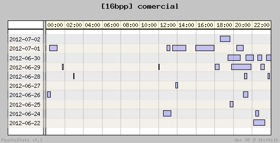 | 2012-06-25 | 5 | 9 | 0.56 | 0 | 0.00% | 20.59% | 00:17:22 | 189.54 |
