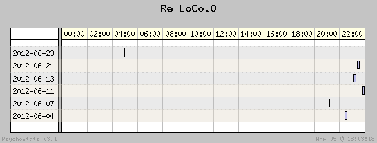 | 2012-06-11 | 6 | 4 | 1.50 | 2 | 33.33% | 12.50% | 00:14:02 | 159.74 |