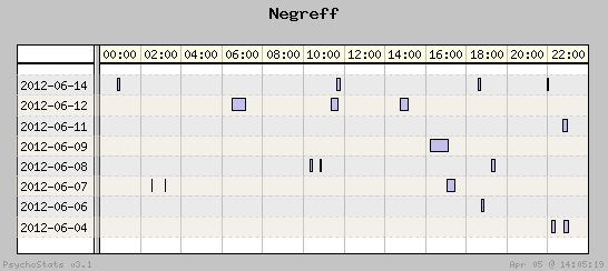 | 2012-06-11 | 0 | 0 | 0.00 | 0 | 0.00% | 0.00% | 00:11:14 | 61.40 |