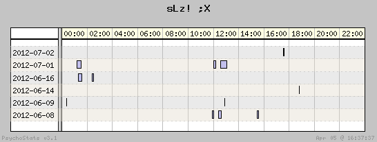 | 2012-07-01 | 33 | 30 | 1.10 | 14 | 42.42% | 15.38% | 00:55:06 | 174.80 |