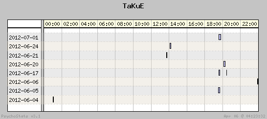 | 2012-06-24 | 9 | 2 | 4.50 | 0 | 0.00% | 0.00% | 00:06:24 | 105.57 |