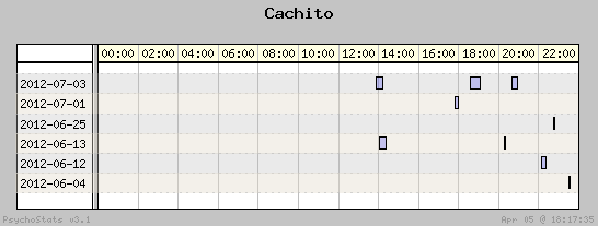 | 2012-06-12 | 4 | 8 | 0.50 | 2 | 50.00% | 19.21% | 00:23:52 | 63.54 |