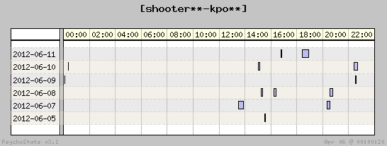 | 2012-06-11 | 10 | 19 | 0.53 | 6 | 60.00% | 18.70% | 00:31:23 | 111.15 |