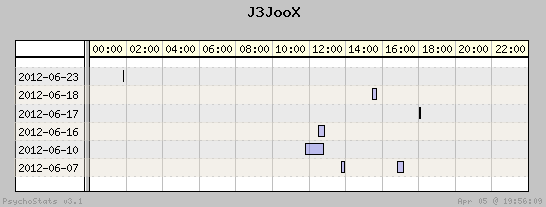| 2012-06-10 | 43 | 21 | 2.05 | 12 | 27.91% | 21.04% | 00:56:05 | 202.19 |