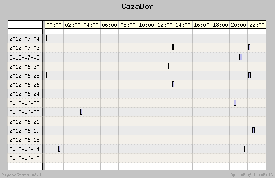 | 2012-06-07 | 6 | 21 | 0.29 | 3 | 50.00% | 13.00% | 00:29:29 | 193.74 |
