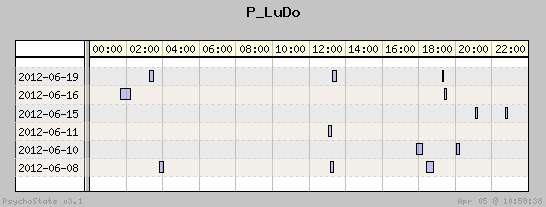 | 2012-06-11 | 5 | 5 | 1.00 | 2 | 40.00% | 26.47% | 00:07:22 | 161.47 |