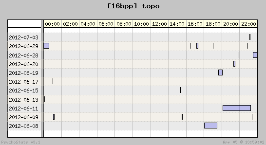 | 2012-07-03 | 1 | 1 | 1.00 | 1 | 100.00% | 6.25% | 00:02:00 | 274.70 |