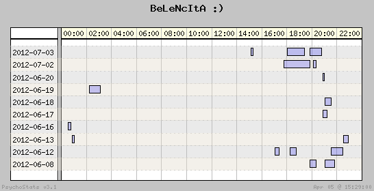 | 2012-06-19 | 27 | 25 | 1.08 | 9 | 33.33% | 22.99% | 00:53:54 | 302.19 |