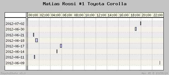 | 2012-06-17 | 3 | 7 | 0.43 | 0 | 0.00% | 12.67% | 00:16:48 | 67.77 |