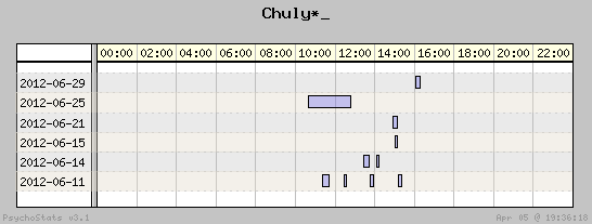 | 2012-06-29 | 8 | 8 | 1.00 | 3 | 37.50% | 23.93% | 00:13:21 | 141.88 |