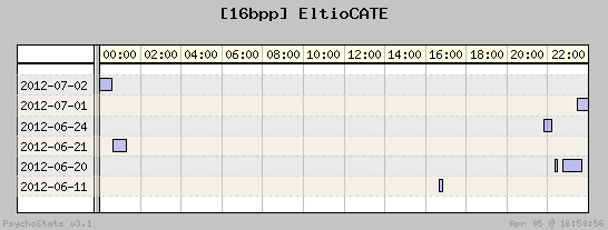 | 2012-06-24 | 1 | 5 | 0.20 | 1 | 100.00% | 11.76% | 00:10:14 | 78.55 |