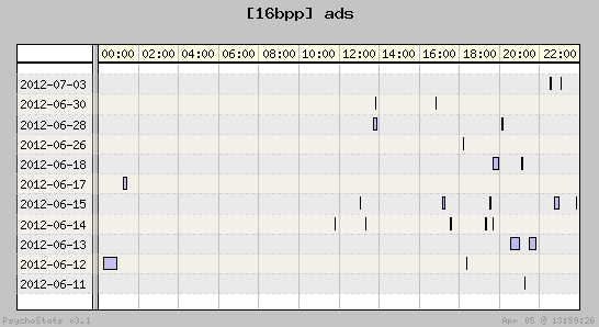 | 2012-06-15 | 5 | 13 | 0.38 | 0 | 0.00% | 9.80% | 00:17:46 | 113.58 |