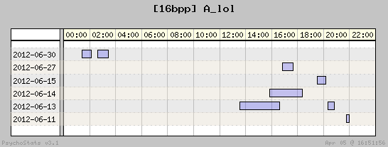 | 2012-06-15 | 4 | 16 | 0.25 | 1 | 25.00% | 12.29% | 00:38:34 | 111.99 |