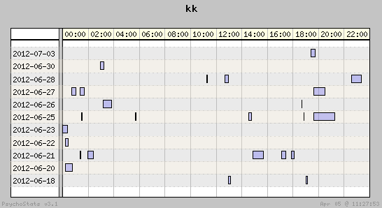| 2012-07-03 | 24 | 10 | 2.40 | 11 | 45.83% | 20.34% | 00:21:13 | 589.63 |