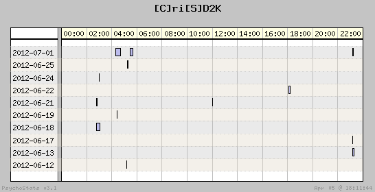 | 2012-07-01 | 19 | 19 | 1.00 | 5 | 26.32% | 14.84% | 00:32:02 | 136.90 |