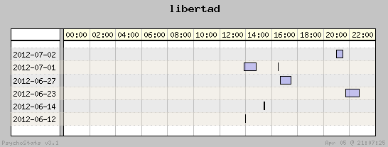 | 2012-06-27 | 28 | 22 | 1.27 | 7 | 25.00% | 17.06% | 00:47:36 | 144.97 |